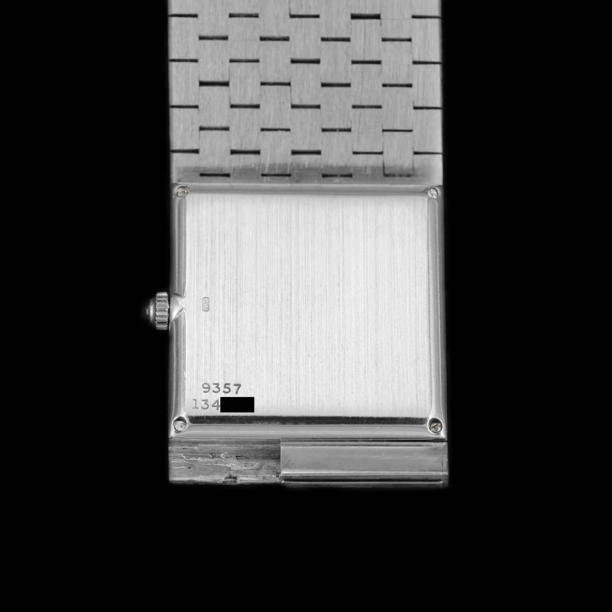 This exclusive 1970s white-gold Piaget stands as a rare expression of the era when haute horlogerie and high jewelry spoke the same design language. Crafted during Piaget’s golden age of ultra-thin, jewel-like watches, this piece adopts a Reflet-style sliding mechanism—a concept rooted in post-war Parisian innovation.